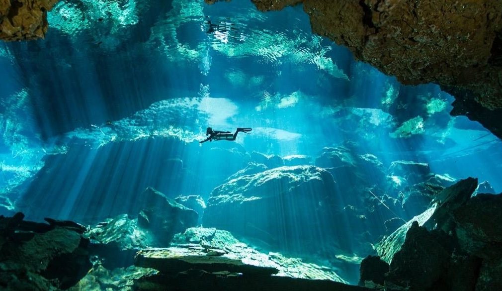 Enter the otherworldly beauty of Mexico’s freshwater caverns with crystal-clear visibility and light rays piercing through the surface. - 2 Dives – Cozumel by Speedboat